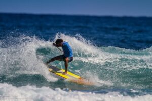 Benjamín Knudsen de Argentina, quien creció en Playa Encuentro, también mostró poderosas habilidades para surfear olas en su serie con giros suaves en condiciones pequeñas. Tom Maurice, entrenador de surf local (EE. UU.), Nicolás de la Cruz (República Dominicana) y Kiki Torrealba (Venezuela) quedaron primeros en sus respectivas series.