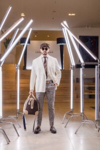 En ‘CFW-ME 20-30’ José Jhan escogió para la confección de las prendas tejidos frescos y fluidos, como el algodón, lino, spandex, gabardinas, entre otros materiales nobles, con accesorios exclusivos de la tienda Navy Crew diseñados por él mismo, lentes de la marca puertorriqueña Vislux The Brand y zapatos de la más reciente colección de Aldo Shoes.