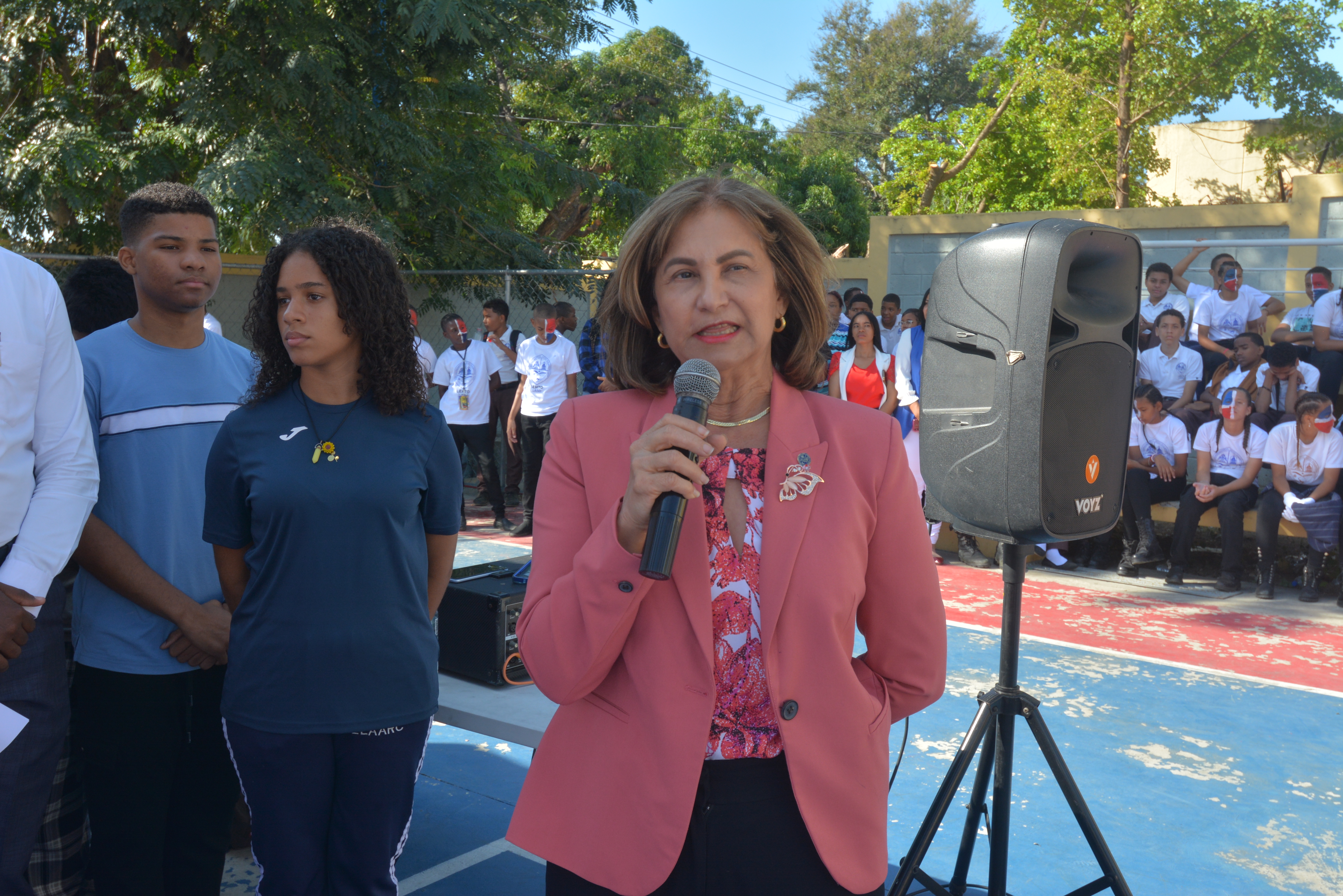 Las palabras centrales del evento fueron pronunciadas por la maestra Rosalía Sosa, vicerrectora de Extensión, en representación del rector Editrudis Beltrán Crisóstomo, en las que expresó su satisfacción de ver tanto derroche de patriotismo en la conmemoración de un aniversario más de la Independencia Nacional.