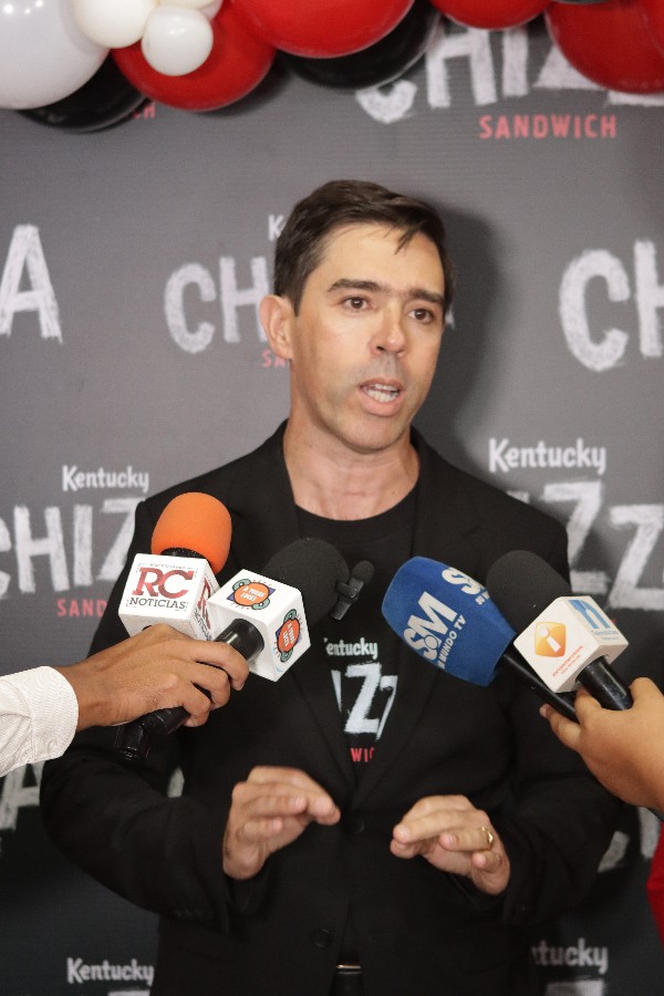 El gerente general de KFC en el país intervino en la presentación del Kentucky Chizza Sándwich, una nueva propuesta culinaria introducida al mercado de la República Dominicana por esa cadena internacional, el cual combina pan brioche, pepperoni, queso mozzarella, salsa marinara y filete de pollo triple crispy, al estilo de KFC.