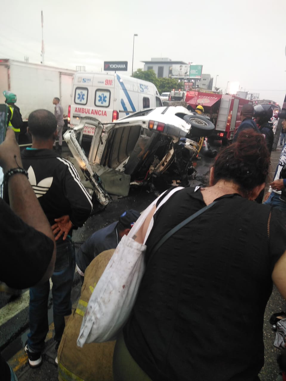 Al momento de ser reportado el evento, el servicio de emergencia envió cuatro ambulancias de la Dirección de Servicios de Atención a Emergencias Extrahospitalarias (DAEH); dos unidades de bomberos del DN; una de la Policía Nacional; y tres de la Dirección General de Seguridad de Tránsito y Transporte Terrestre (DIGESETT) quienes viabilizan el tránsito y realizan el retiro de los vehículos accidentados.