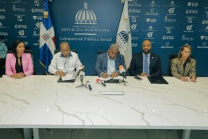 Santo Domingo.- El coordinador del Gabinete de Política Social, Tony Peña, y el director ejecutivo del Consorcio para la Integración y la Inclusión, (COIN), Santo Rosario, firmaron este martes un convenio de colaboración interinstitucional para fortalecer las políticas de inclusión y apoyo social en favor de las personas en condición de vulnerabilidad, en el marco de los “Objetivos de Desarrollo Sostenible”.