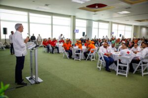 Santiago.– El presidente Luis Abinader sostuvo un encuentro con comunitarios y voluntarios de la Defensa Civil, Cruz Roja y el Cuerpo de Bomberos, donde afirmó que seguirá escuchando a todos los sectores para solucionar los problemas de la gente en todo el país.