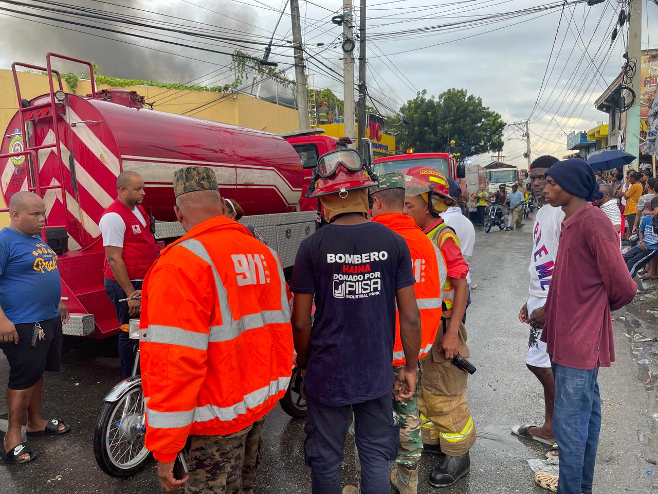 El incendio también es atendido por 14 camiones de los Cuerpos de Bomberos de San Cristóbal, Haina, Distrito Nacional, Yaguate, Santo Domingo Este, Santo Domingo Oeste y Santo Domingo Norte; dos unidades de la Dirección General de Seguridad de Tránsito y Transporte Terrestre (DIGESETT); y seis de la Policía Nacional.