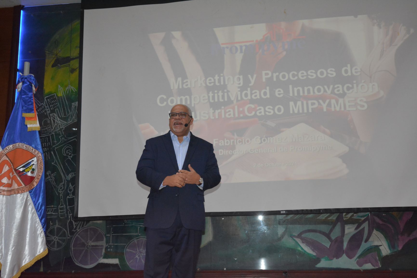 En marco de celebración del Día Nacional del Mercadólogo, la Escuela de Mercadotecnia, de la Facultad Ciencias Económicas y Sociales (FCES), de la Universidad Autónoma de Santo Domingo (UASD), presentó una conferencia a cargo del director general de Promipymes, Fabricio Gómez Mazara, quien describió los efectos que la crisis económica mundial ha impactado el sector de las Pequeñas y Medianas Empresas, conocidas como Mipymes.