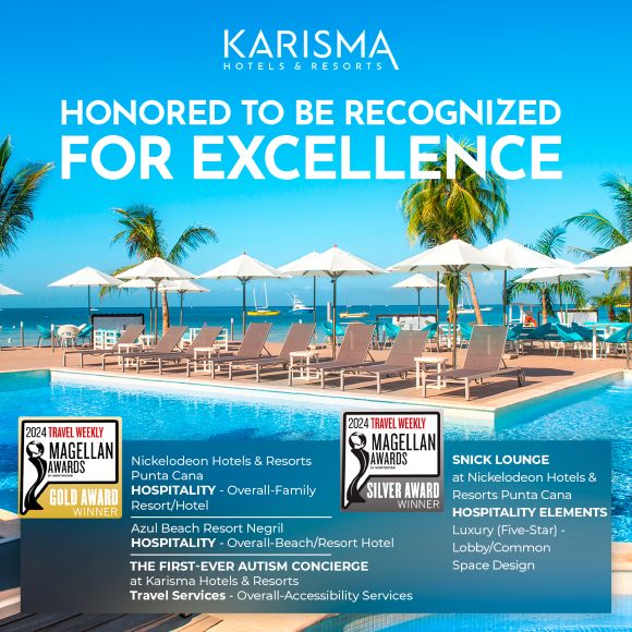 Punta Cana, La Altagracia, RD. – La cadena hotelera internacional Karisma Hotels & Resorts celebra haber alcanzado cuatro galardones de oro y dos de plata en los prestigiosos premios Magellan Travel Weekly Awards y dos reconocimientos en los Stella Awards de Northstar Meetings Group que reconocen lo mejor de la industria de la hospitalidad y sus profesionales destacados.