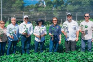 Luego del lanzamiento oficial del Mes de la Reforestación, la presidenta de Sur Futuro mostró al ministro los tres viveros de Padre las Casas, que son de árboles frutales y de pino Occidentalis, en un recorrido por la fundación en esa provincia, acompañado por César Dargam, vicepresidente Ejecutivo del Consejo Nacional de la Empresa Privada (Conep); Ángela Pérez, diputada de Azua; José Elías González, viceministro de Recursos Forestales; Ana Emilia Pimentel, viceministra de Cambio Climático, entre otros.