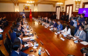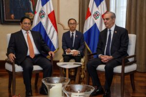 Santo Domingo.- El presidente Luis Abinader recibió este jueves, en visita oficial en el Palacio Nacional, sede del Gobierno de la República Dominicana, al primer ministro de la República Socialista de Vietnam, Pham Minh Chinh.