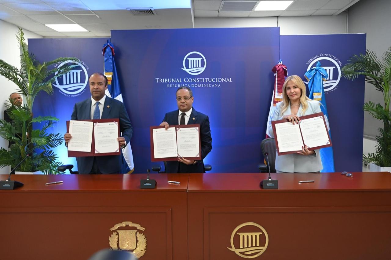 En el acto de la firma del convenio estuvieron presentes, por el TC, el director general administrativo y financiero, José Luis Polanco; el director general técnico, Christian Cuello; la directora de relaciones internacionales e interinstitucionales, Heidy Berroa; la directora de Gestión Humana, Katerinne Minaya; la directora de Despacho, Monserrat Pérez; la coordinadora de asesores, Oleine Valdez, y la asistente jurisdiccional II, Luz Heyaime.