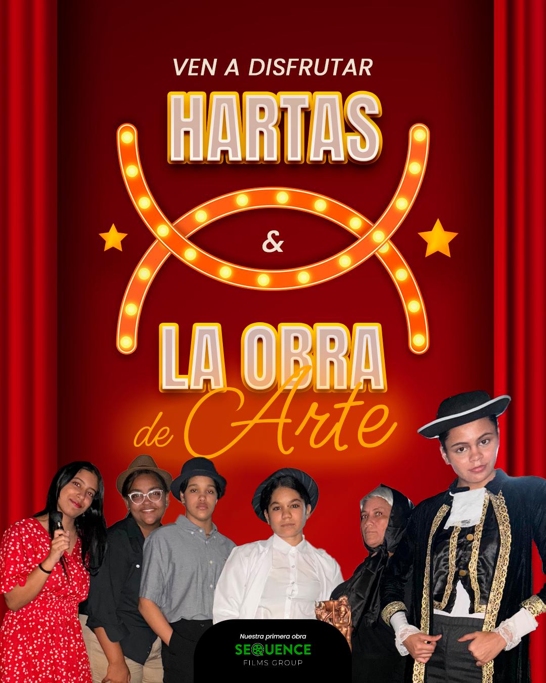 Hartas, escrita por Marina Frías, narra la historia de cuatro amigas que, en un reencuentro marcado por confesiones, deciden dar un giro radical a sus vidas al trazar un plan macabro. Esta obra promete un drama cargado de emociones y sorpresas. El elenco está conformado por Angélica María Bautista Mejía, Yoscarli Castillo, Kaina Niliet y Rosaily Paulino Pujols.