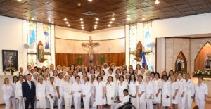 En la presentación de las ofrendas, cada representante de las instituciones que asistieron, desfiló con una rosa blanca, representando la pureza del servicio voluntario, donde se ve el rostro de Dios en cada enfermo o envejeciente.