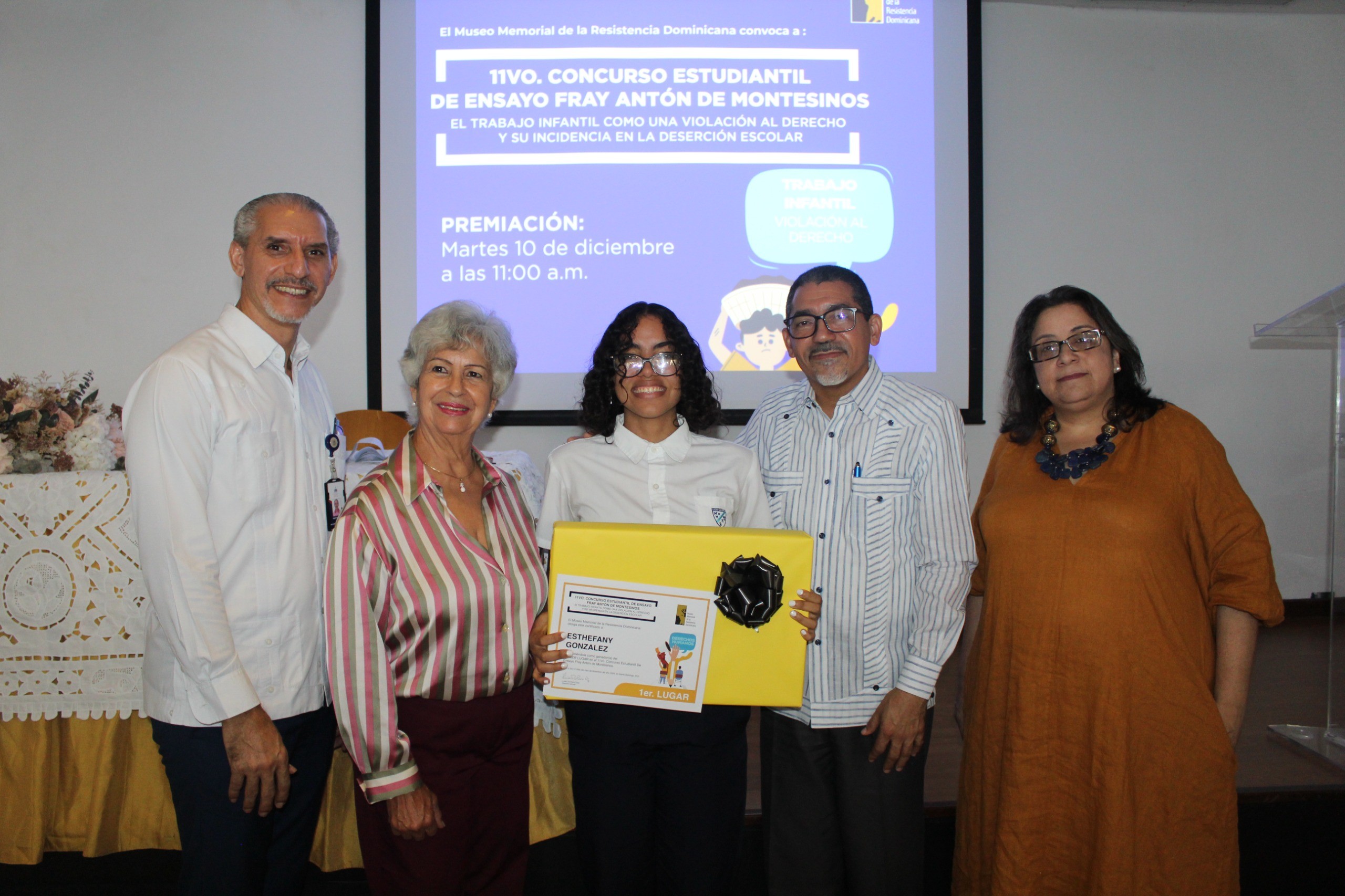 Santo Domingo, DN.- En ocasión de conmemorarse el Día de los Derechos Humanos, el Museo Memorial de la Resistencia Dominicana (MMRD) dio a conocer los ganadores del décimo primer Concurso Estudiantil de Ensayo Fray Antón de Montesinos, una iniciativa que tiene como objetivo incentivar al estudiantado del nivel secundario sobre la importancia de conocer la memoria histórica del país y darla a conocer a través de los ensayos.