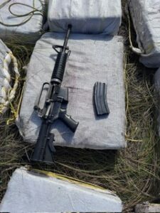 En la intervención se ocupó además un fusil marca Colt modelo M-16, calibre 5.56, una embarcación de 28 pies de eslora, con dos motores fuera de borda de 250 caballos de fuerza cada uno, 15 garrafones de combustibles, entre otras evidencias.