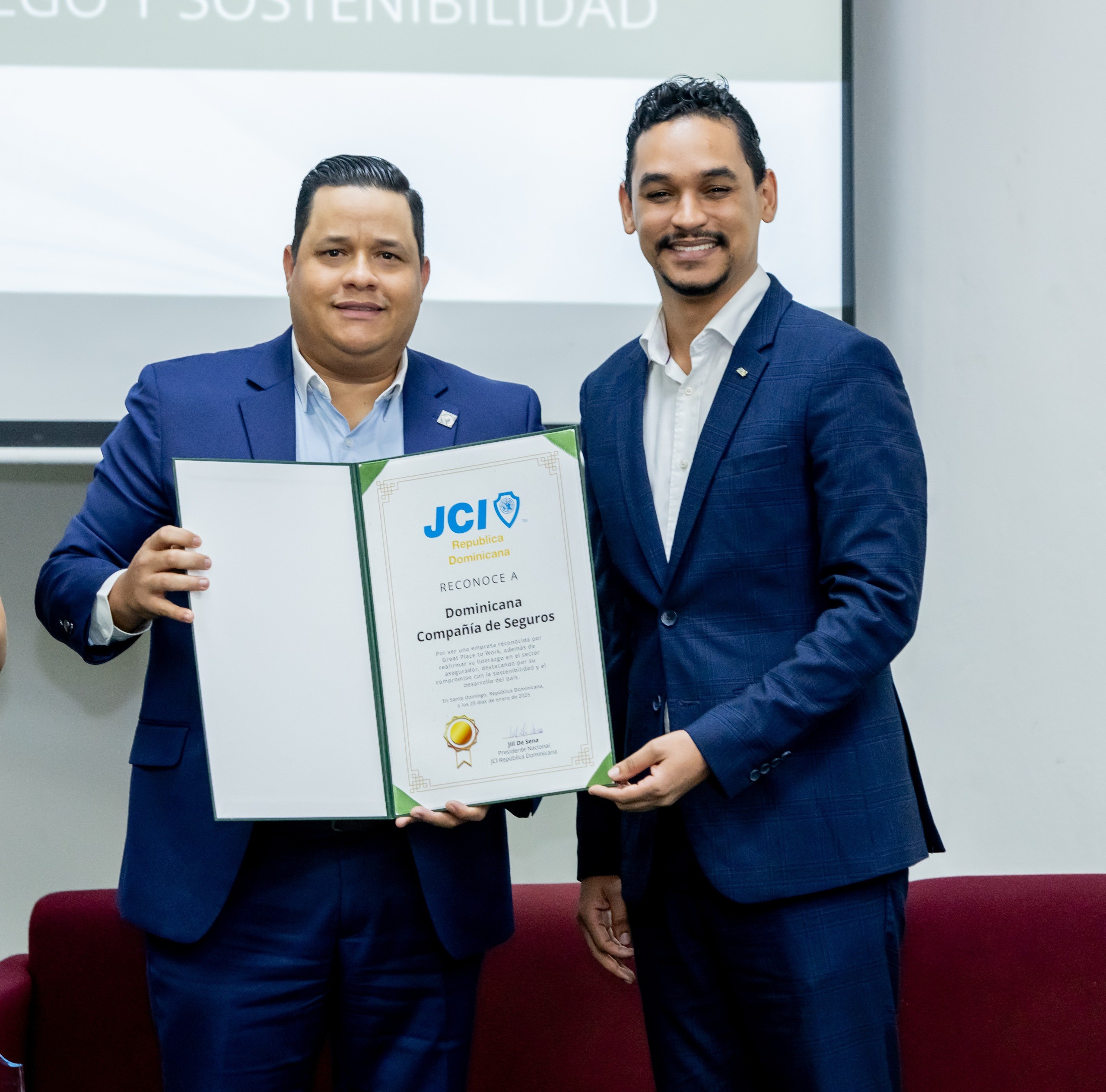 Santo Domingo, R.D. – La Junior Chamber International (JCI) República Dominicana reconoció a Dominicana Compañía de Seguros por su liderazgo en el sector asegurador y su compromiso con la sostenibilidad y el desarrollo del país.