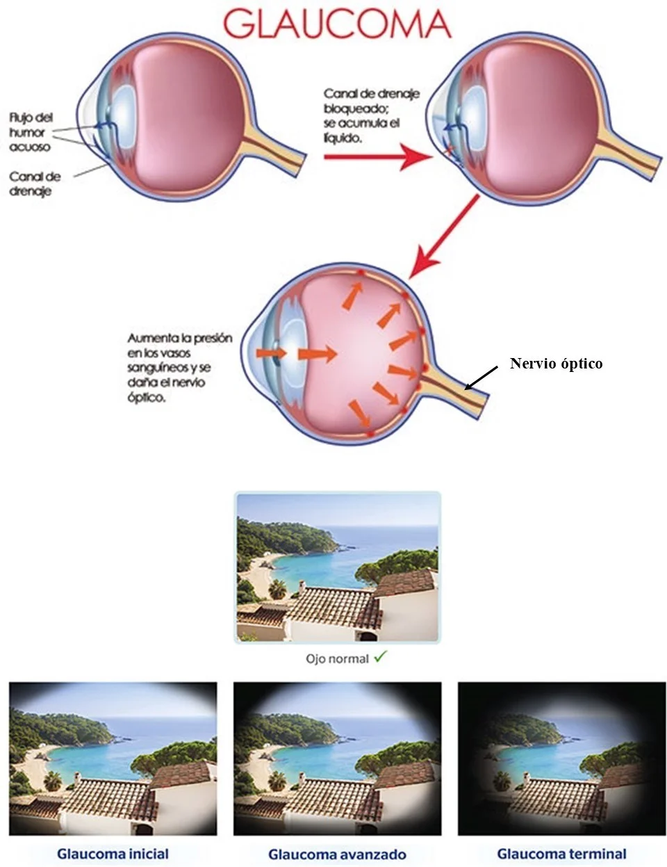El glaucoma es una enfermedad crónica, progresiva y silenciosa que afecta el nervio óptico, el cual juega un papel crucial en la transmisión de la información visual desde el ojo hacia el cerebro. Este daño ocurre debido a un aumento de la presión intraocular, que resulta de un desequilibrio en la producción y el drenaje del humor acuoso, el líquido encargado de mantener la forma y salud del ojo. La acumulación de presión sobre el nervio óptico provoca una pérdida gradual de la visión.