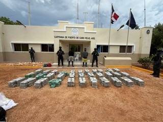 Luego de una intensa persecución que duró poco más de 12 horas, los equipos operativos y de reacción, lograron interceptar la embarcación a varias millas náuticas al Sur de Isla Beata, donde arrestaron a dos hombres y confiscaron 33 pacas, conteniendo en su interior, 720 paquetes presumiblemente cocaína y otros 114 de un vegetal que se presume es marihuana, para un total de 834 paquetes.