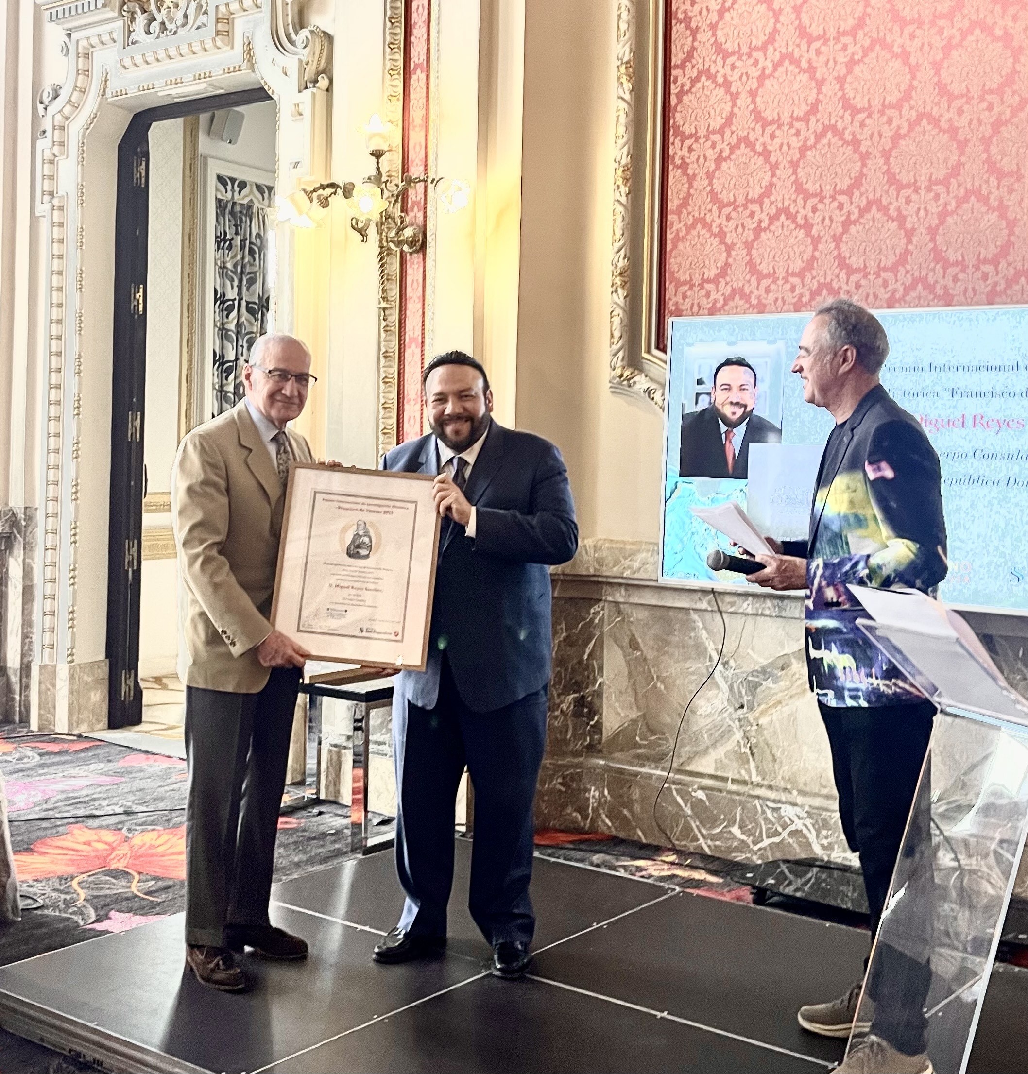 MADRID. Con su obra “El Cuerpo Consular y su presencia en República Dominicana”, el historiador y diplomático dominicano Miguel Reyes Sánchez obtuvo el Premio Internacional de Investigación Histórica “Francisco de Vitoria” 2025. dentro del marco de la Feria del Libro de Madrid.