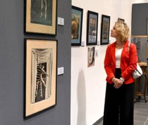 La embajadora de Francia, Sonia Barbry durante el recorrido por la exposición Almas Latentes III.