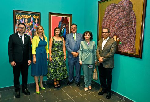 La embajadora de Francia, Sonia Barbry durante el recorrido por la exposición Almas Latentes III.
