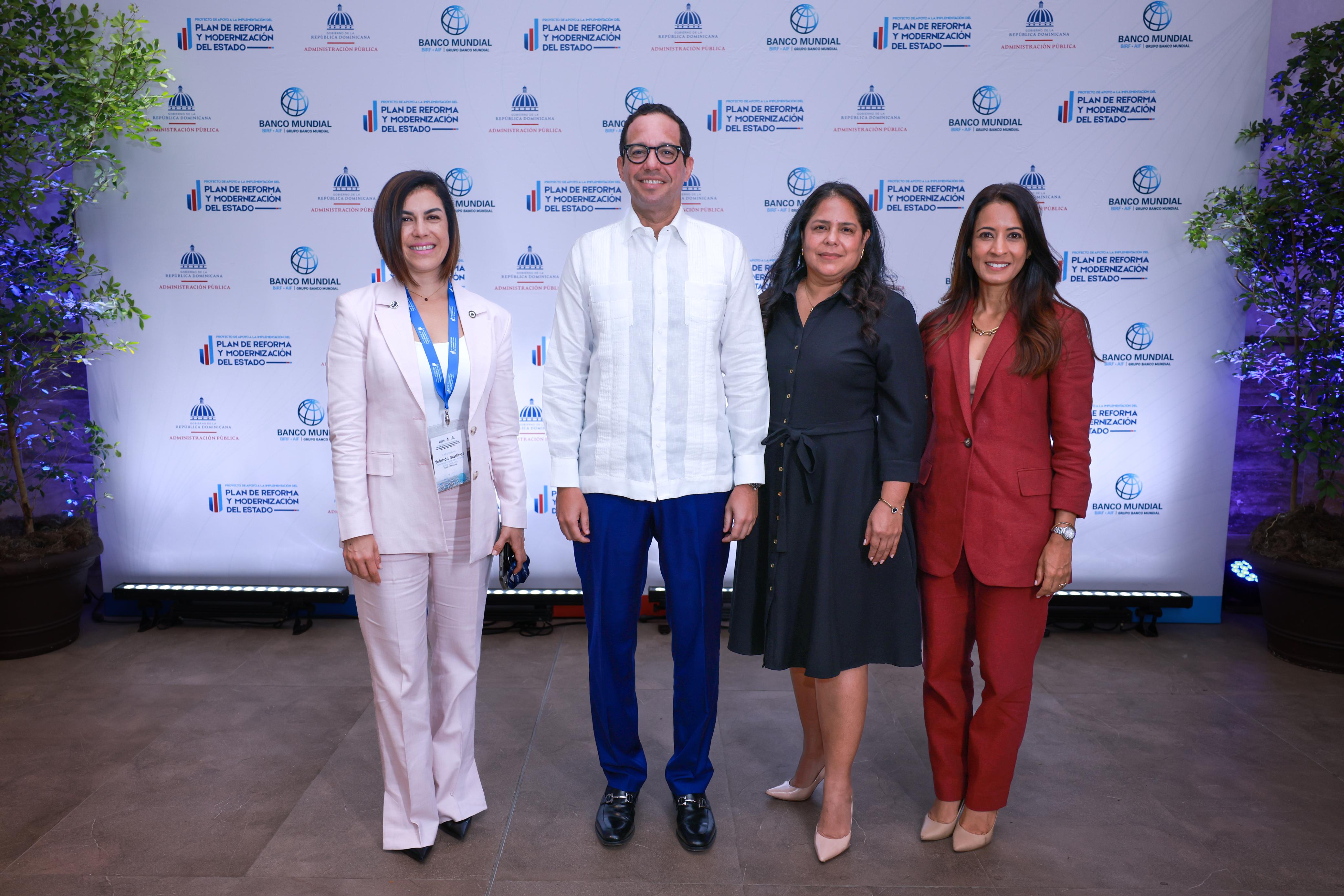 De izquierda a derecha, Yolanda Martínez, gerente de Prácticas Digitales para Latinoamérica del Banco Mundial; Sigmund Freund, ministro del MAP; Carolina Rendón, representante residente del Banco Mundial y Julissa Cruz, del Indotel.