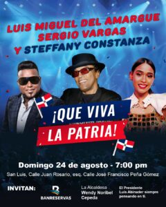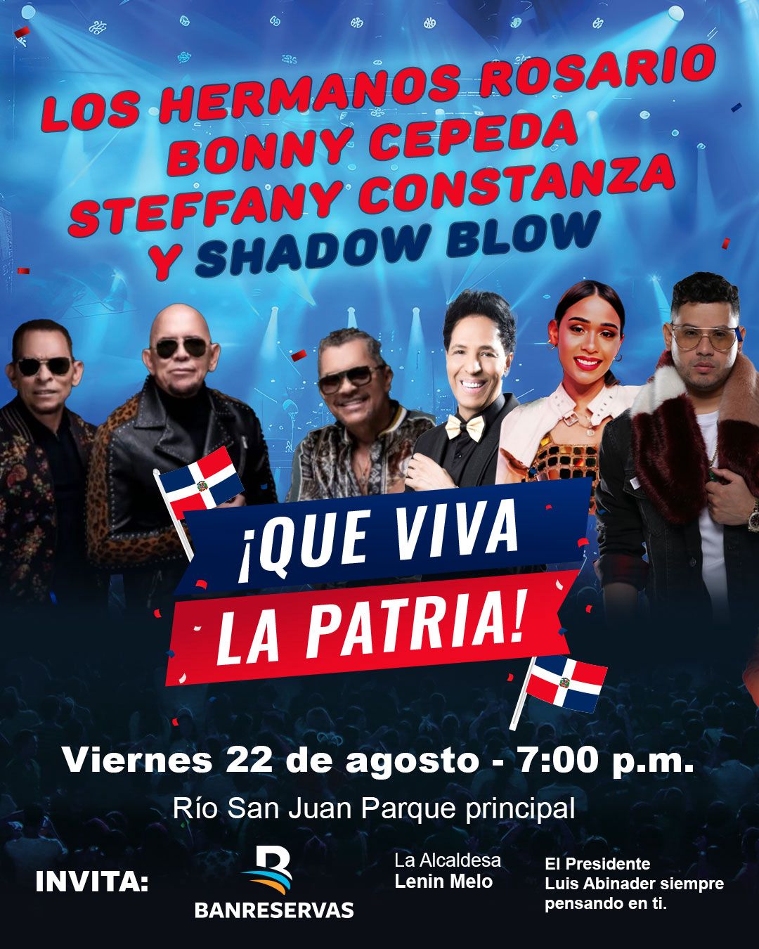 La muy exitosa plataforma de conciertos “Viva la Patria” conmemora el 162 aniversario de la Gesta Histórica de la Restauración con una serie de presentaciones gratuitas Multitudinarias que honran nuestros valores, tradiciones y héroes nacionales. Este programa cuenta con el patrocinio de Banreservas, en cumplimiento de su misión de compromiso social para la promoción de los valores históricos y culturales del país, y con el valioso respaldo del presidente Luis Abinader, apoyo decisivo para hacer realidad esta iniciativa que mantiene vivas las fechas patrias.