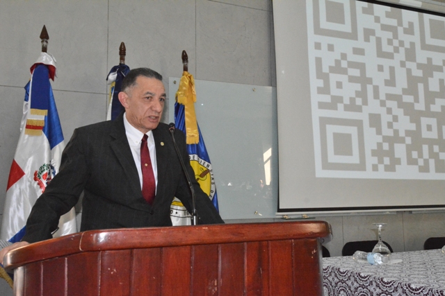 El decano de la FCS de la UASD, doctor Mario Uffre se dirige a los presentes.