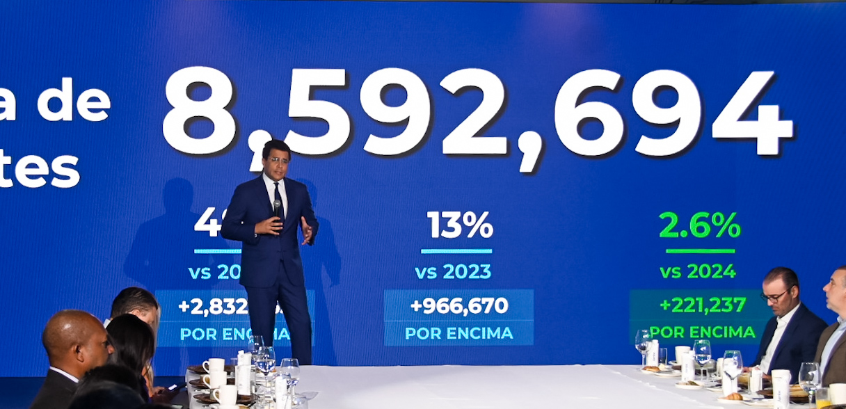 El funcionario informó que en el período enero-septiembre el país recibió 6,575,483 turistas por la vía aérea, lo que representó un crecimiento de un 32% respecto al 2019, un 9% con relación al 2023 y 2.3% en comparación del 2024.