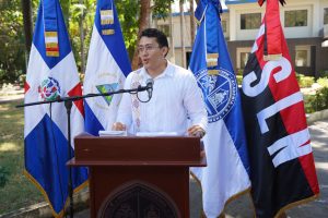 Durante el acto solemne, intervino Starlin Quezada, en representación del Comité de Juventudes en Solidaridad con Nicaragua, quien resaltó la relevancia de Sandino como líder político y defensor de la independencia de Nicaragua.