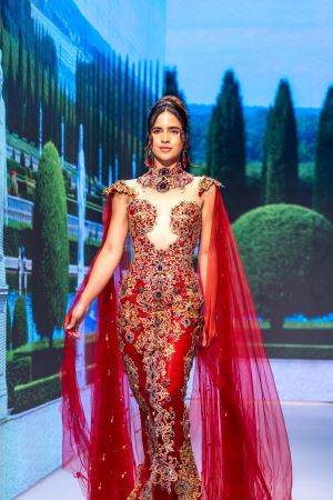 Santo Domingo, República Dominicana.- La reconocida diseñadora Giannina Azar abrió la pasarela de la 26 edición del RD Bridal Week 2026 con una colección llena elegancia y arte, inspirada en el Renacimiento y en María Antonieta, para la cual trajo a Roger, orfebre panameño, que realizó piezas hechas totalmente a mano.
