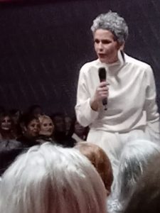 “Nos exigen ser las más flacas, las más exitosas, las mejores madres y esposas, y aún así, sonreír”, explicó, la humorista que mezcla el humor y la verdad, incluso resalta sus propias inseguridades, como la de las canas que tuvo que dejarse debido a una alergia, ya que se teñia de rubia desde que tenía 20 años y hoy tiene 49.